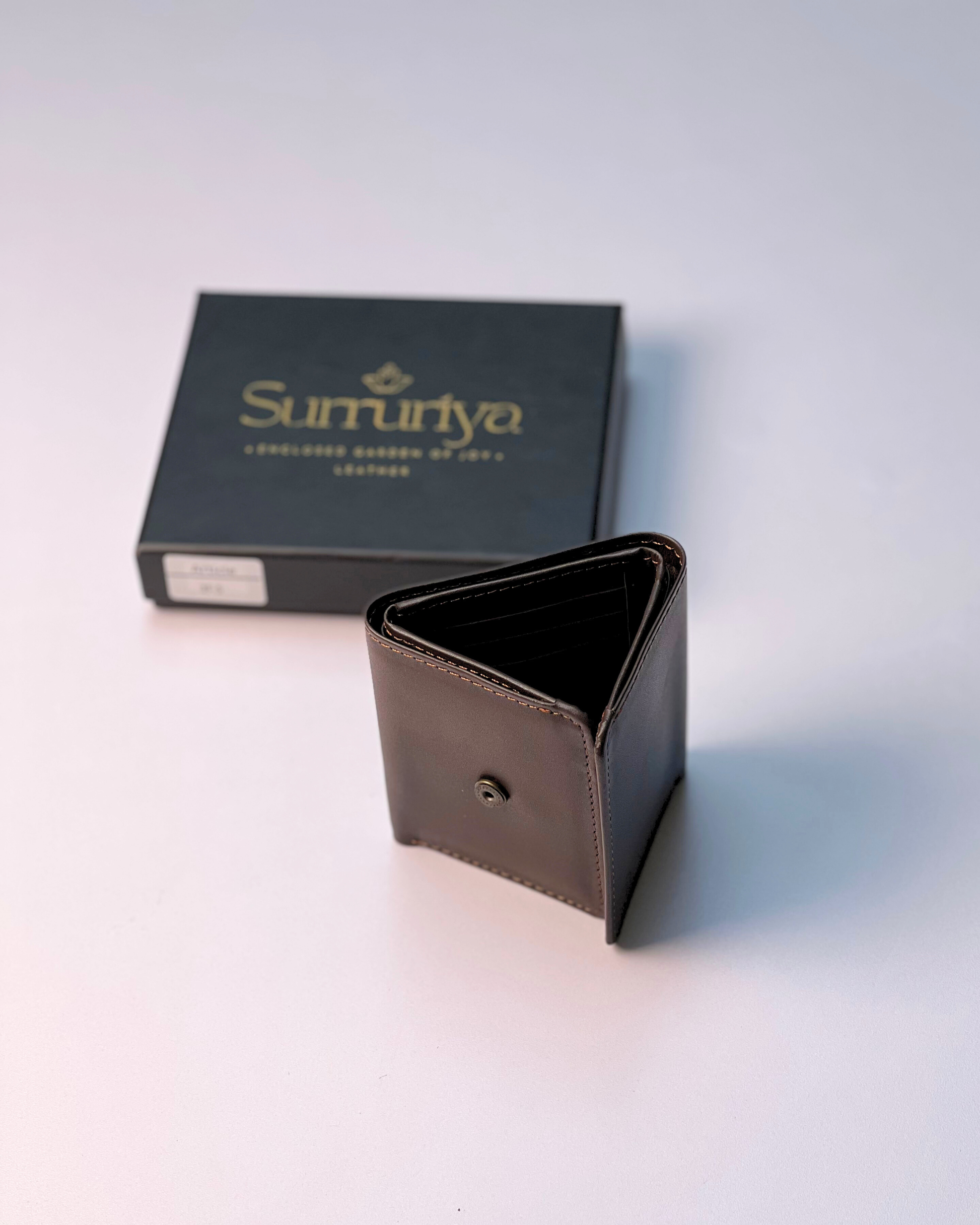 Classic trifold wallet crafted from smooth plain leather. Available in brown. Spacious, durable, and ideal for daily use. Buy online in Pakistan.
